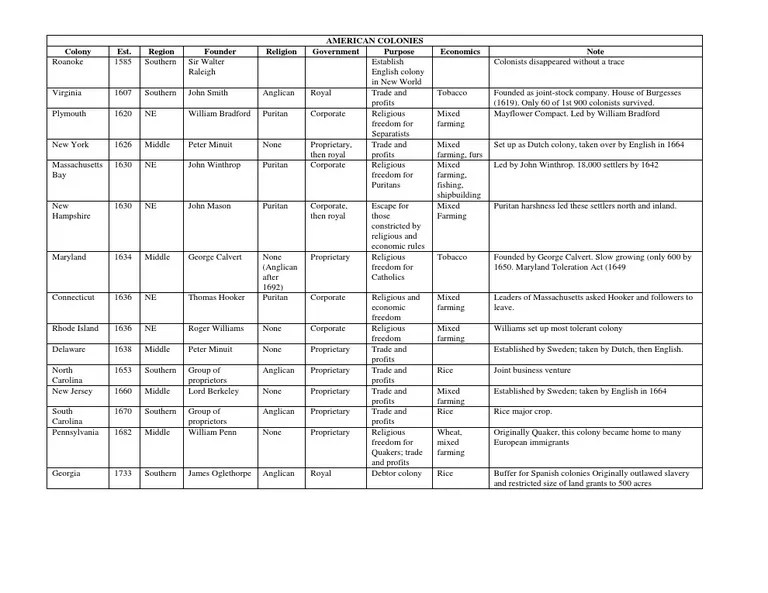 Web view thirteen colonies chart answer key.doc from history misc at mount de sales academy. Web the 13 colonies were a group of settlements that became the original states of the united states of america. This handout includes the list of 13. Teaching the history of the united states inevitably involves some sections. Prompt:explain why the four colonial regions (the.