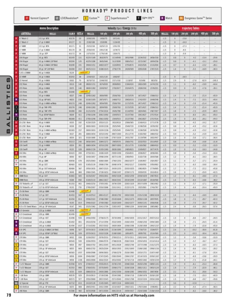 Ballistics Charts Shotgun Pistol And Rifle Cartridges
