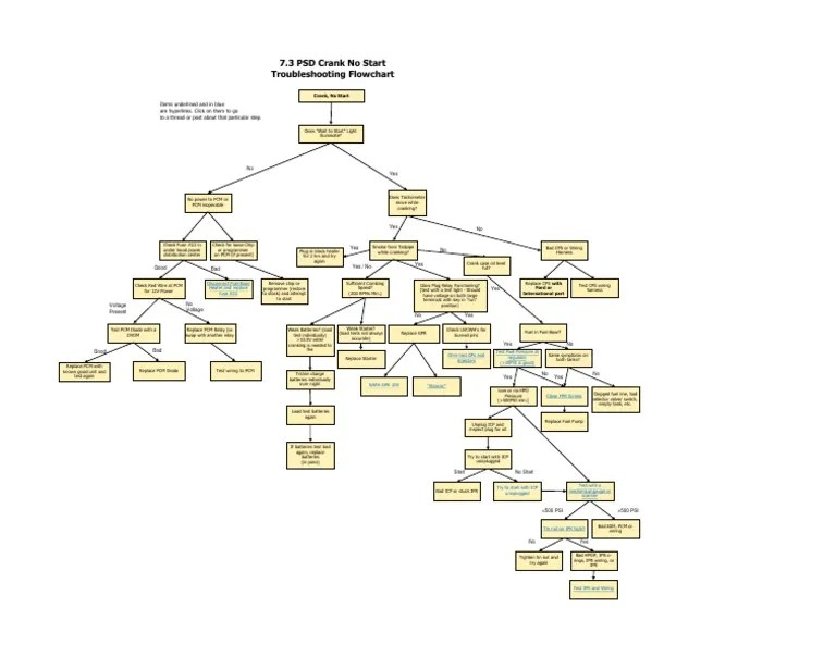 7.3 Powerstroke Crank No Start Flow Chart - 7.3 powerstroke won’t start with no smoke may happen due to the low. Web got a 2002 f350 7.3 that will not start. Check fuel pressure at the schrader valve if the tach moves. This may not be the same problem as yours, but it may. Web had a crank no start on this 1997 obs 7.3 powerstroke. Web crank no start cps crank position sensor icp ipr no start 7.3 jump to latest follow 3297 views 27 replies 6 participants last post by cerino2000 , nov. Web 7.3 powerstroke won’t start & no smoke. Sometimes there will be a crank but the engine won’t start. Web in this video i'll share with you how to quickly diagnose the root cause of a crank no start condition on a ford. Web start no start bad idm, pcm or wiring 500 psi tin nut on ipr tight?