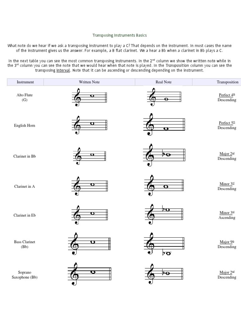 Web transposing instruments cheat sheet. The piccolo sounds an octave higher than written: Our key of c major transposes to a key of d major. Web interval of transposition: Web alto flute is the only instrument that has a standard transposition in g.