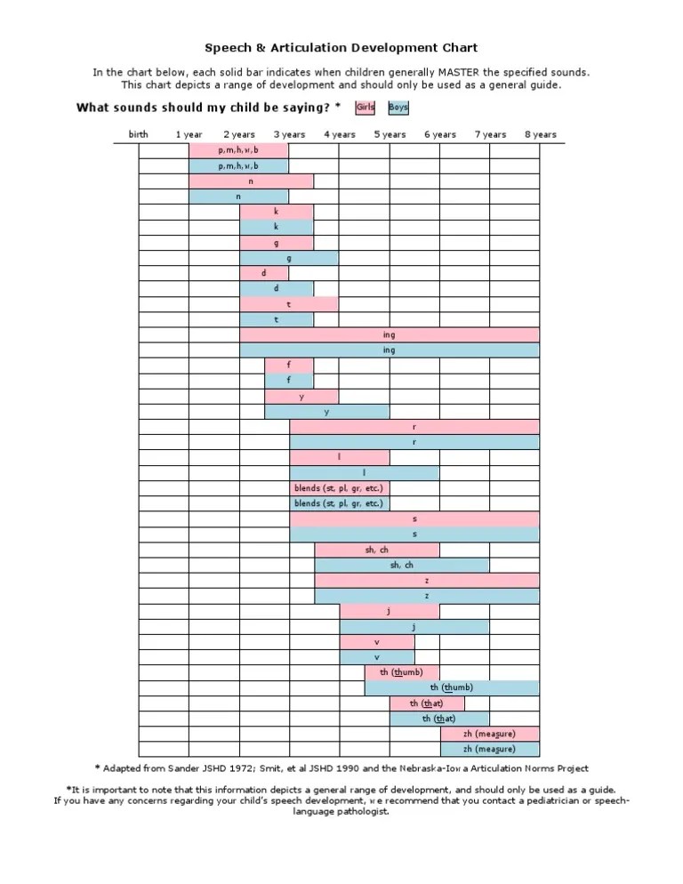 Articulation is the production and clarity of how speech sounds are produced. Web charts of speech, language, and hearing milestones from birth to 5. Well, first i would encourage you to look at the charts on this post. This is a list of the approximate ages at which children should have mastered different sounds.