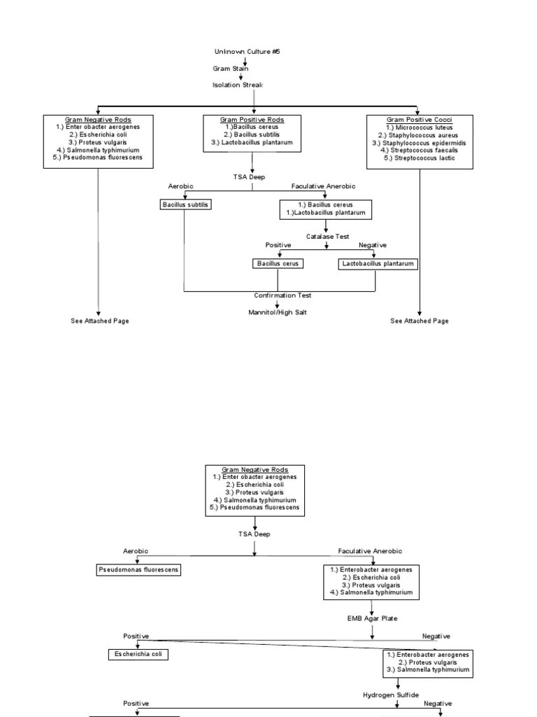 Web after your bacteria have been isolated and you have good results from your gram stain, begin to follow the flow chart below. Web microbiology unknown flowchart by creately templates edit this template use creately’s easy online diagram editor to edit this. Web identification flow charts 4 bacillus spp. Web inoculate various biochemical tests and be able to read and understand the significance of each test, whether positive or negative.