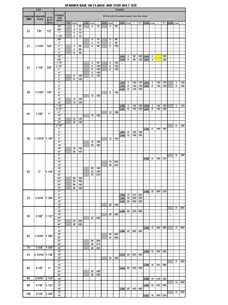 Spanner Base on Flange and Studbolt Size Plumbing Mechanical