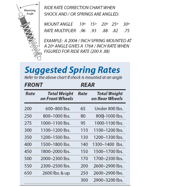 Spring rate refers to the amount of weight that is needed to compress a spring one inch. Web as you can see from the accompanying chart, courtesy of qa1, the correction factor increases as the angle. A 400 lbs/in spring compresses 1 inch for every 400 lbs of. Web by john snow / in suspension and coilovers , how to.