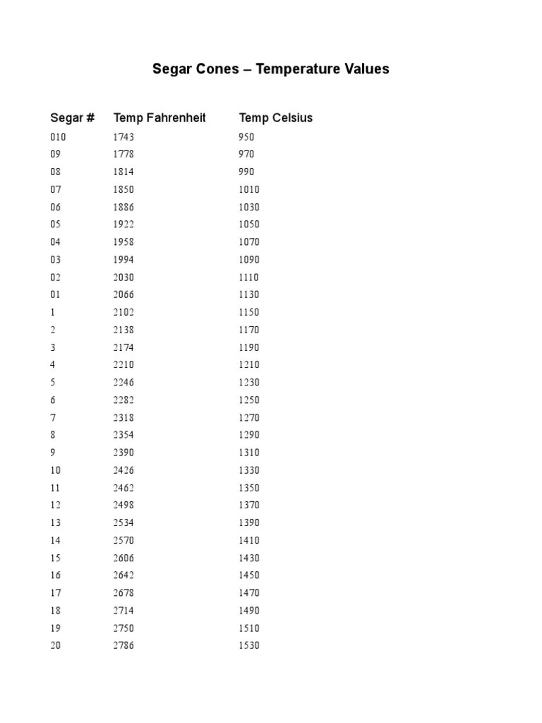 Segar Cone Temperature Chart