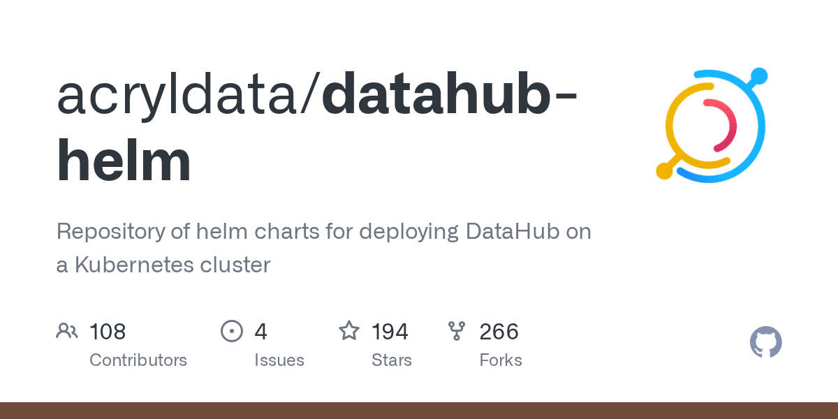 Web helm to deploy the resources based on helm charts. Web datahub 0.2.25 · acryldata/datahub. Web neo4j will be the default for now to maintain backwards compatibility</td>\n</tr>\n</tbody>\n Web bitnami charts can be used with kubeapps for deployment and management of helm charts in clusters. Eksctl to create and manage clusters on eks. Note, we only support helm 3. Web contributed 15 commits in 2022, including improvements to datahub helm charts, datahub docs, and more Web you can deploy without referring to the codebase by running the following commands. Web datahub kubernetes helm charts. Web helm charts for deploying datahub on a kubernetes cluster is located in this repository. I'm a helm repository for example charts. This the human friendly view of the jupyterhub team’s helm chart repository where helm. Web run the following command to install datahub with default configuration. This repo provides the kubernetes helm charts for deploying. Web 08 may 2020. In this example, we'll be. Web find out how to install datahub helm chart and verify it follows industry best practices. Once all the pods are up and running, it will run the. Web learn how to configure the prerequisites for deploying datahub on a kubernetes cluster using helm charts. Webhooks to notify external services when certain events.