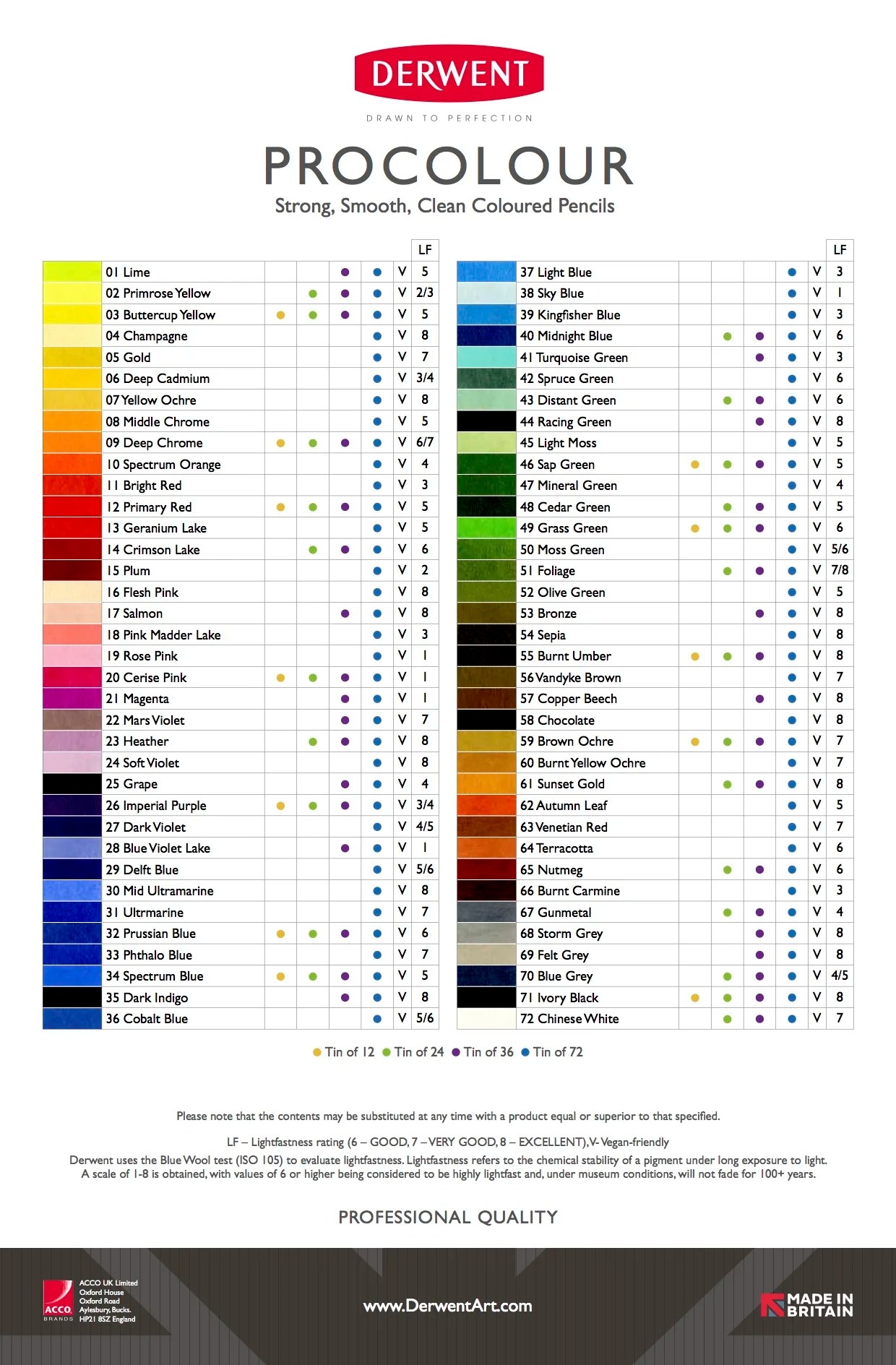 Web derwent lightfast pencils have been formulated to be 100% lightfast. Whether you have 36, 72, or the full 100 pencils, this chart should work great for. Whether you have 36, 72, or the full 100 pencils, this chart should work great for. Web colour charts testing & safety recycling faqs brands.