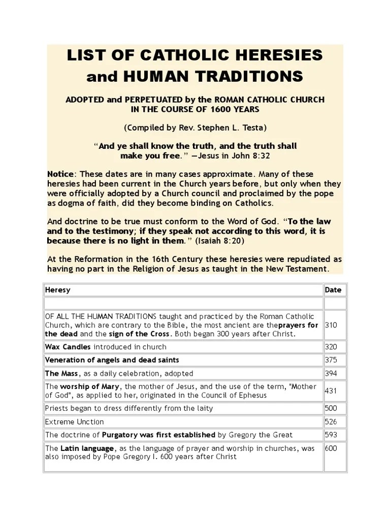 List of Catholic Heresies Abrahamic Religions Catholic Church