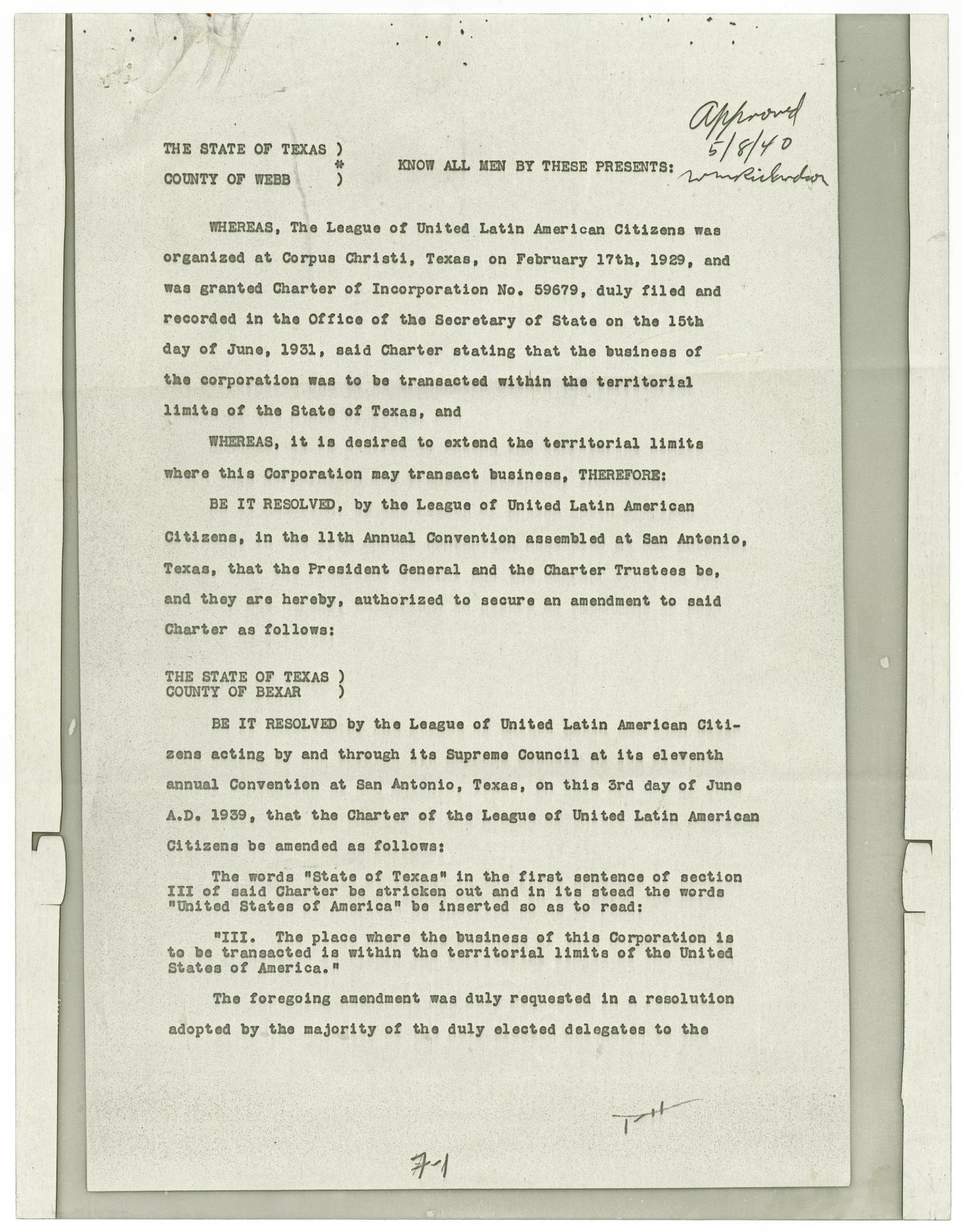 [Amendment to LULAC Charter 19400415] The Portal to Texas History