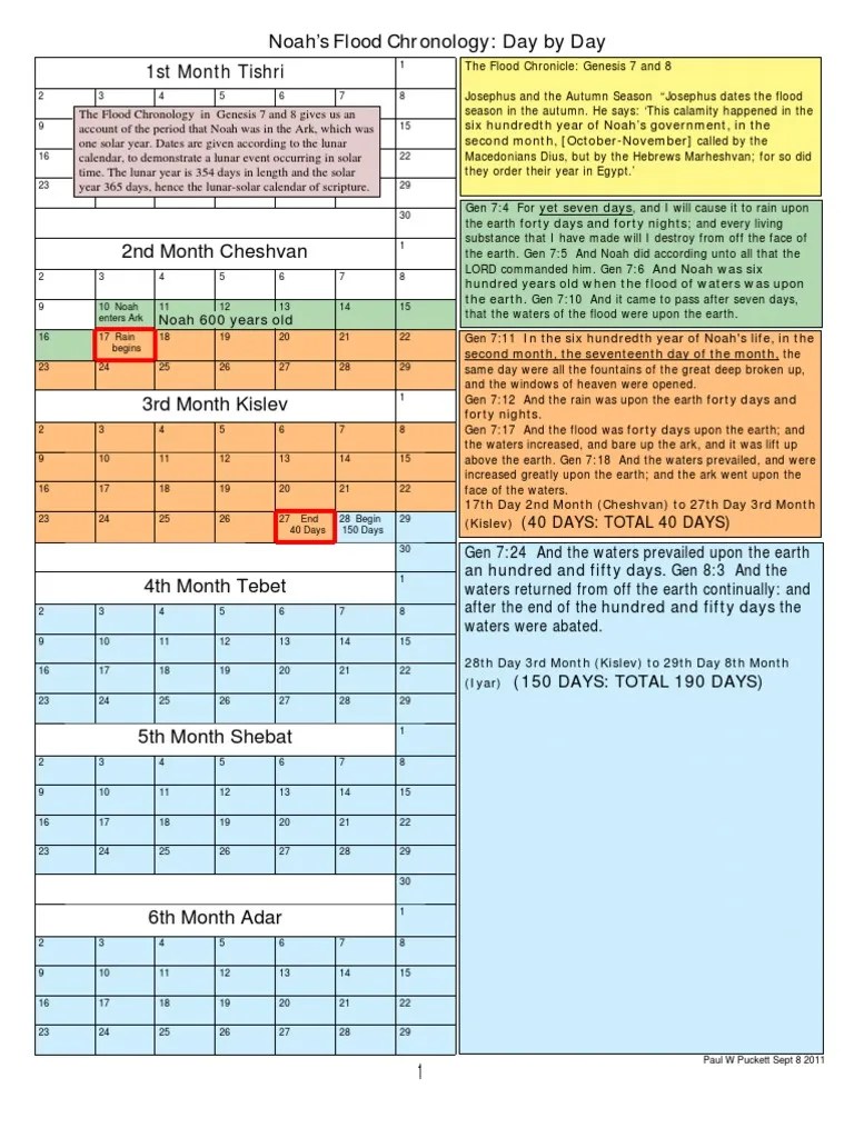 Flood Chronology Chart Day by Day Genesis Flood Narrative Noach