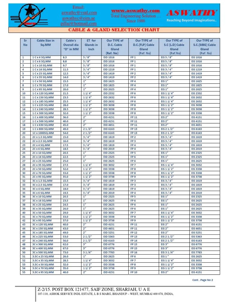 For example, if your cable bundle diameter is 50mm means then you. Web 19 rows swa cable gland chart: Web swa cable gland and cleat selection chart swa gland size chart (bw and cw glands) cable cleat size. Web cable gland & cable cleat selector chart conductor size (mm squared) no.