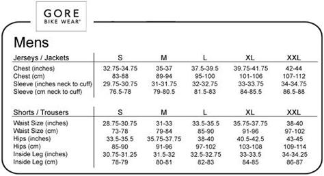 Gore Apparel Sizing Chart