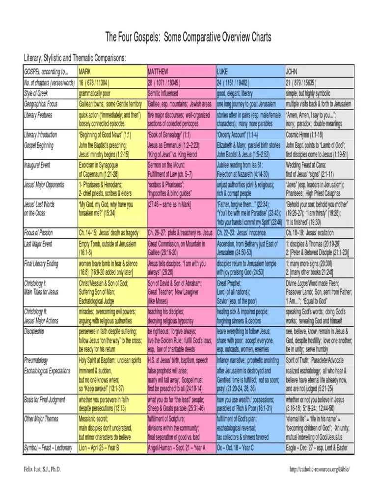 Four Gospel Charts PDF Gospel Of Mark Gospel Of Matthew