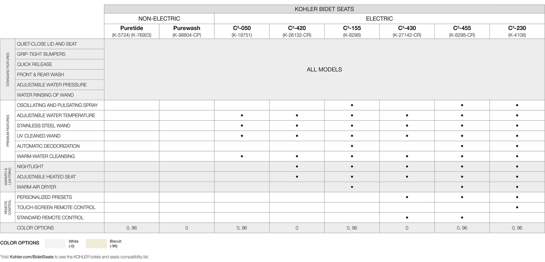 Web therefore, the product quality is also quite complicated, and finding the suitable kohler bidet compatibility chart is also very. Web we've compiled a pretty comprehensive list of all the bidet toilet seat models we carry and this should help you in making a. Web updated april, 2023 summary: Web to confirm seat compatibility, please reference our bidet seat compatibility.