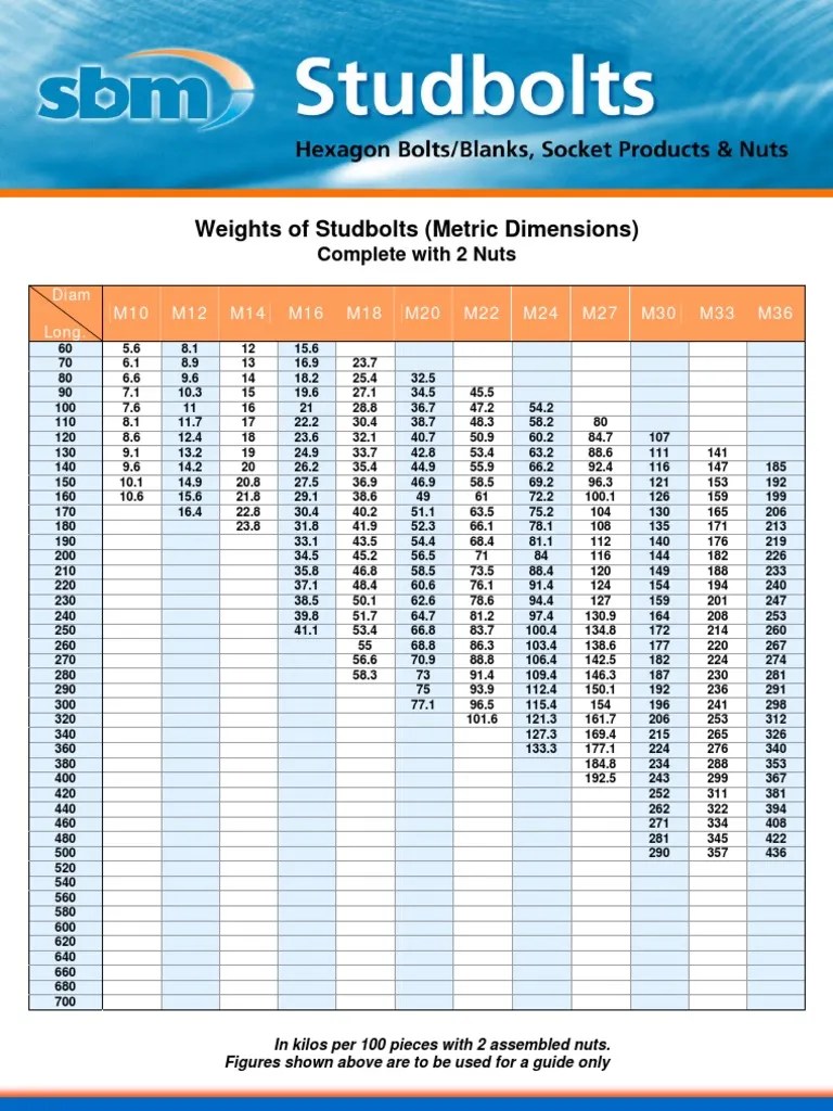 Studbolts Weight Imperial Sizes Mechanical Engineering