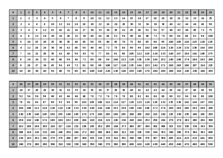 Printable Multiplication Chart Up To 50 Printable Multiplication