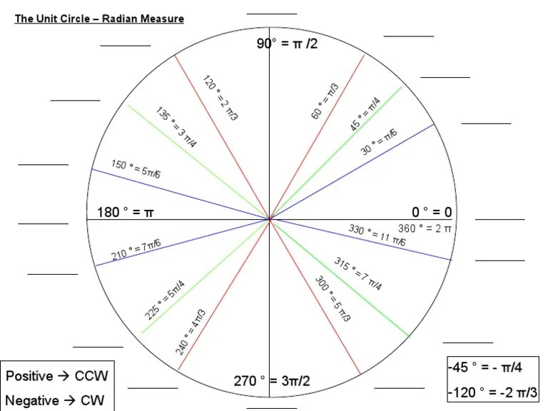 The unit circle chart shows the positions of the points on the unit circle that are formed by dividing the circle into. Here are the steps to create a variable. Multiply by 180, divide by π to go from degrees to radians:. 2 π rad = 360°.