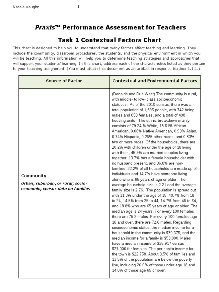 Ppat Task 1 Contextual Factors Chart An Overview Of The Teacher Work