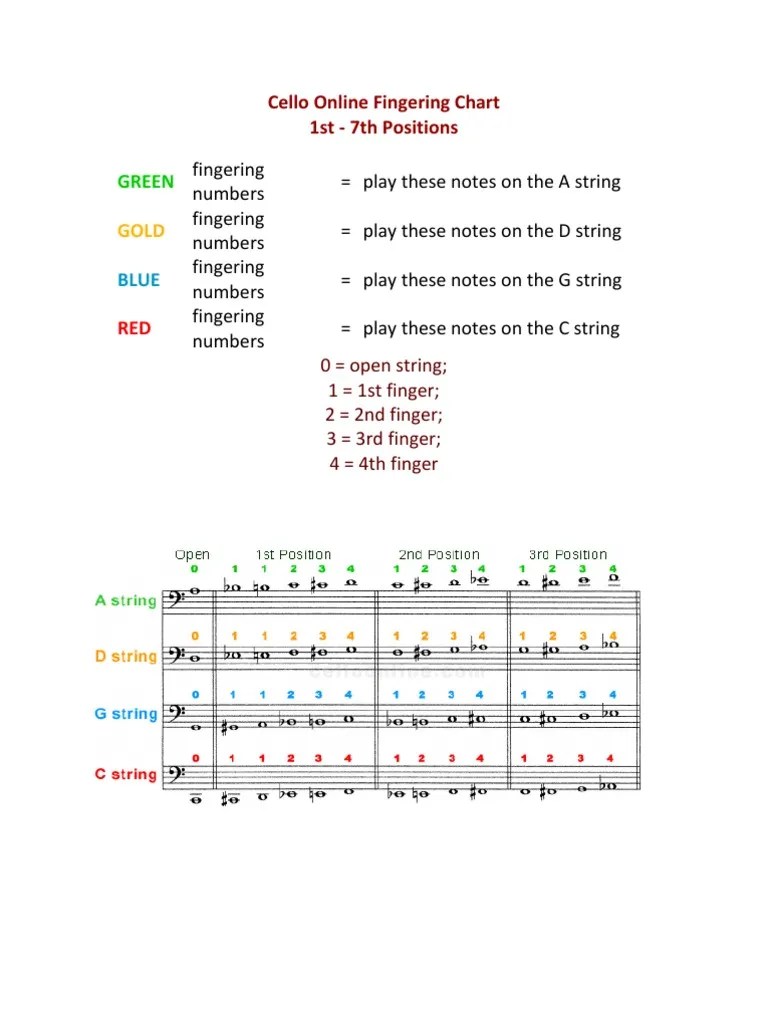 10 cello fingering charts are collected for. Enjoy learning music with fun! Web cello online fingering chart 0 = open string; Write the name of the notes on one side of a flashcard and the. The image below (from the cello companion) shows the notes for the first 7 positions on the cello for the four strings (with the.