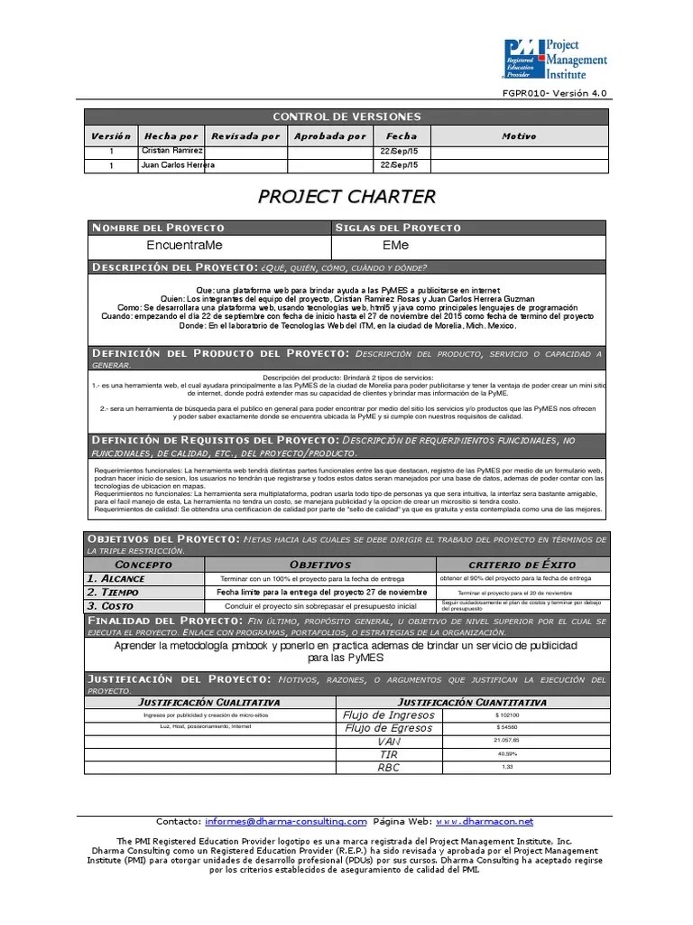 Project charter Ejemplo by Rolfin Gonzalez Issuu