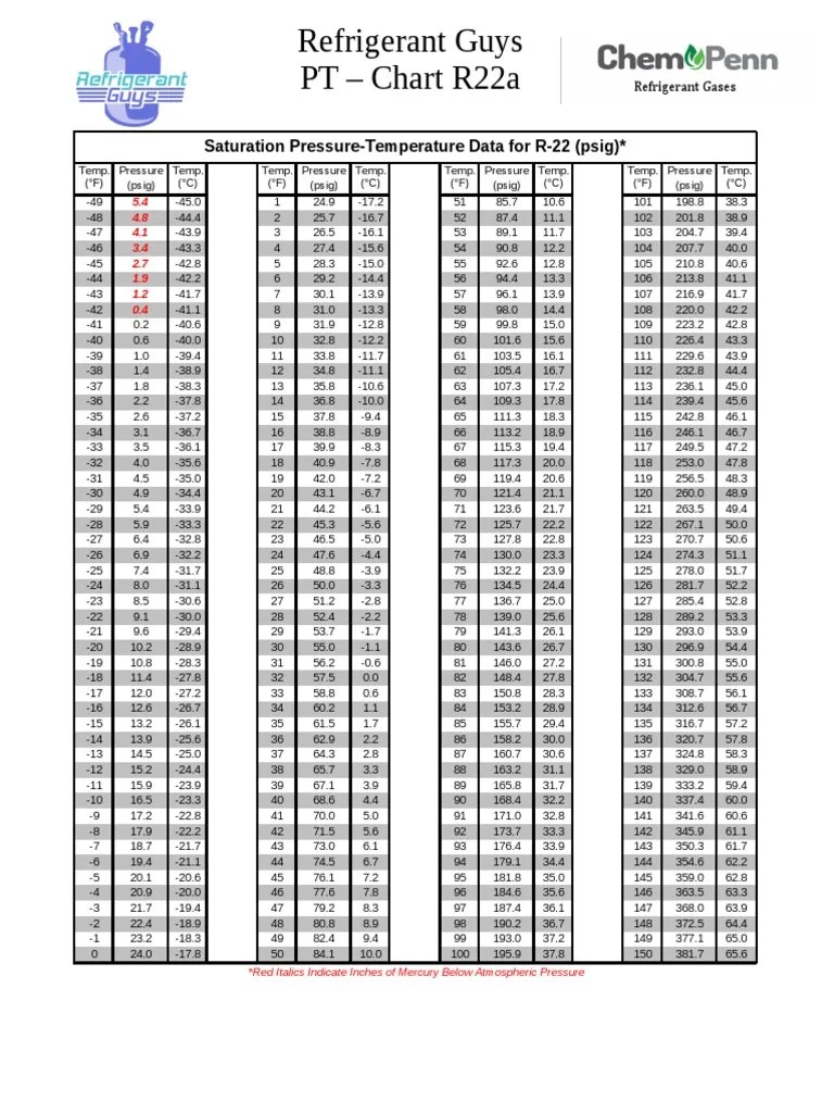Web r22, single component, hcfc. Web pt charts are most often used for three purposes: Charts use °f and psig. Si charts are available for si boards. To check the amount of.