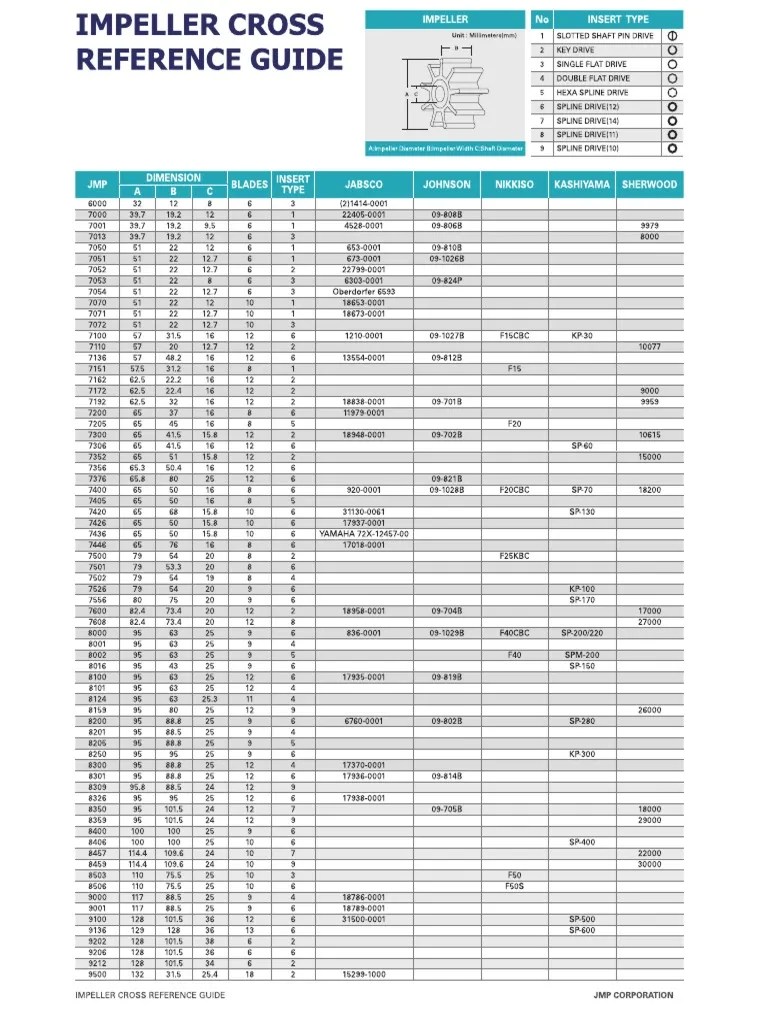 JMP Marine Flexible Impeller Quick Cross Reference Guide Jabsco