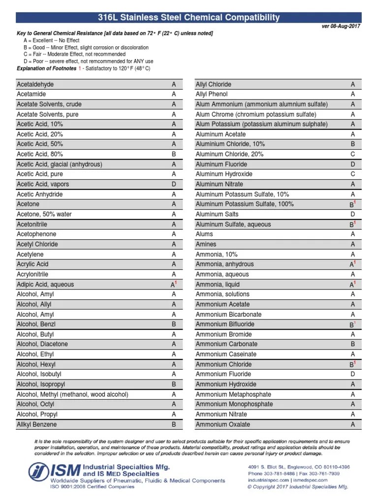 316L Stainless Steel Chemical Compatibility Chart Chlorine Acetic Acid
