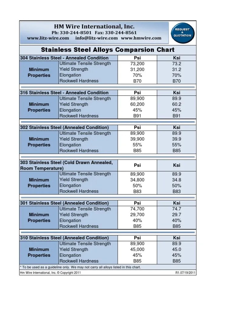 Take this chart with you instead! Click the button below for a free pdf version: Web stainless steels austenitic stainless steels include the 200 and 300 series of which type 304 is the most common. There are some important parameters you should know when selecting the right metal for. Web unlike mild steels, the yield strength of annealed austenitic stainless.