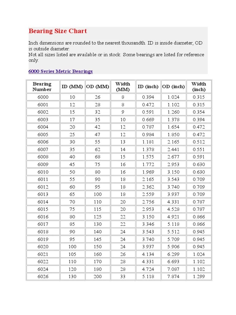 Bearing Size Chart