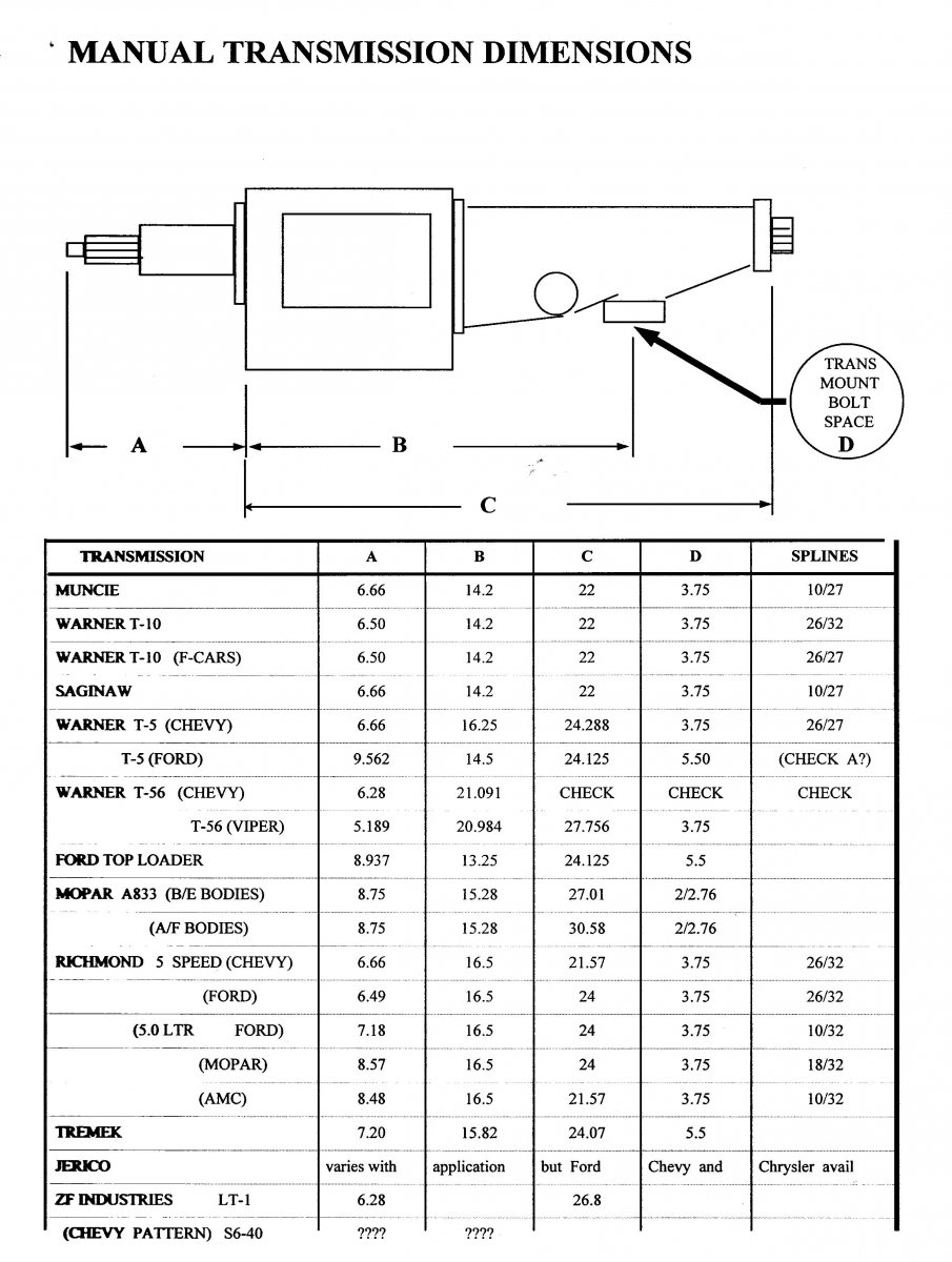 Magnum 6speed size comparison chart American Powertrain TREMEC