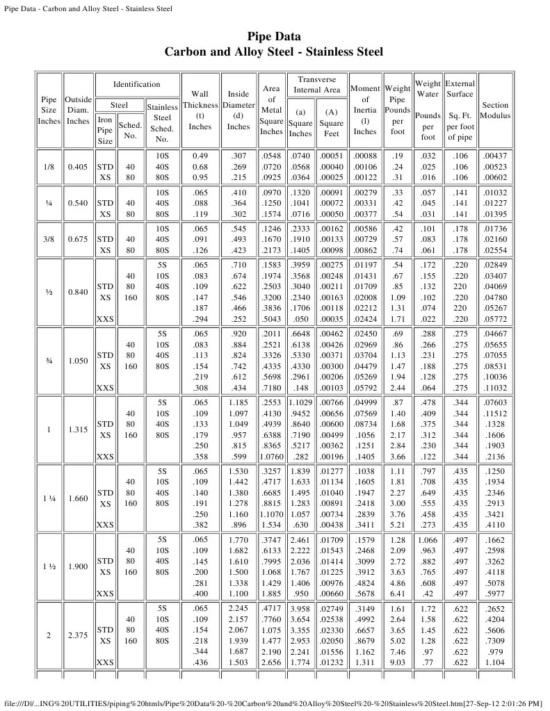 STANDARD PIPE NPS SCH THICKNESS OD ID CHART EngTank