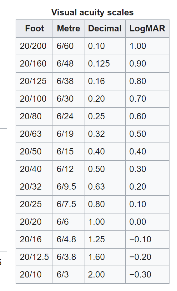 Web Visual Acuity “Cheat Sheet” For High And Low Vision By Michael Bach Snellen Ratio, Decimal Acuity, Logmar, Letters, Counting Fingers,.