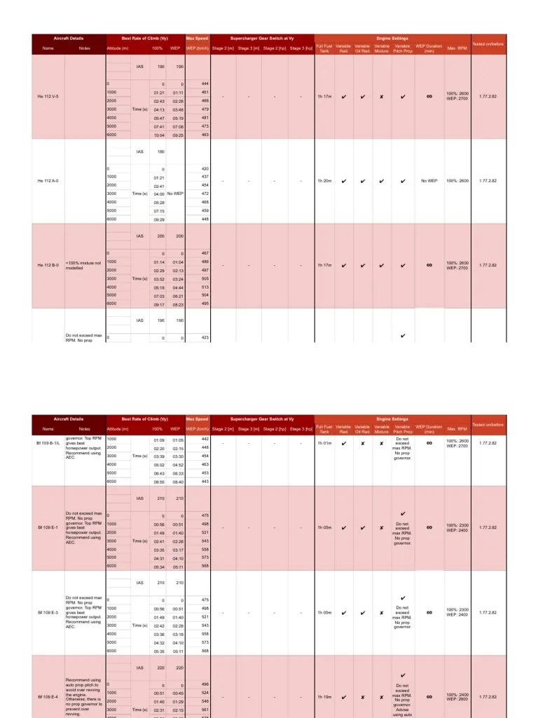 War Thunder Climb & MEC Chart Messerschmitt PDF Horsepower Engines